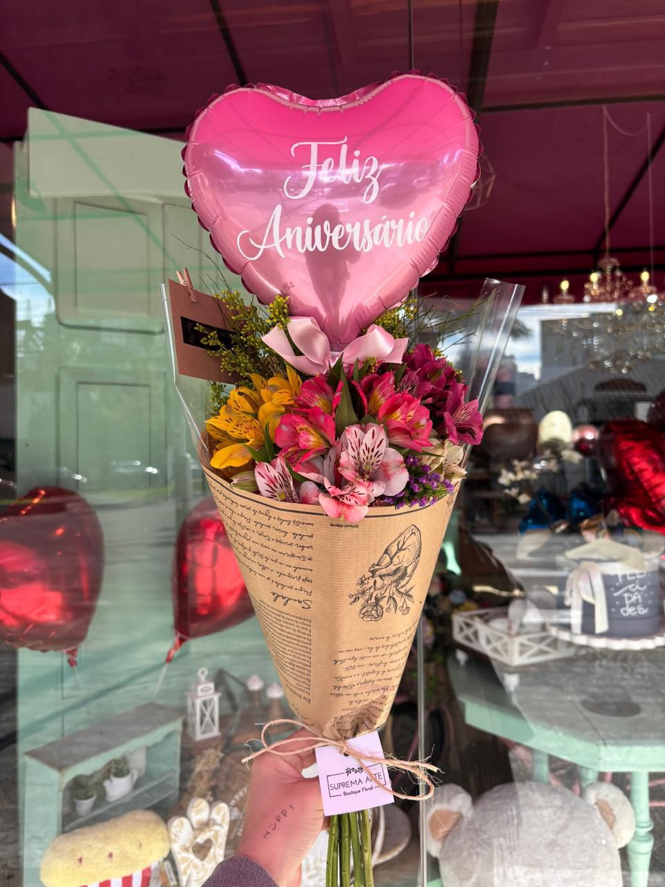 Buquê de Astromélias + Balão | Suprema Arte