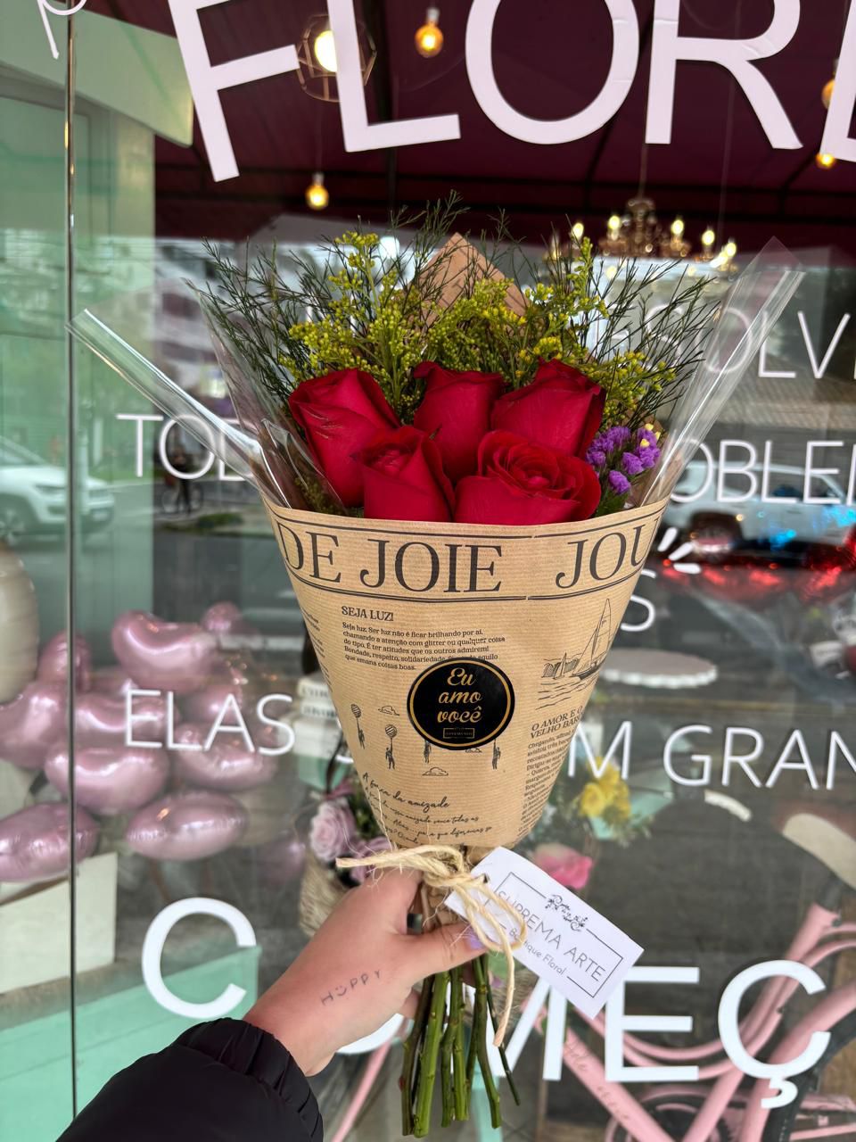 O Buquê Love com 5 Rosas Vermelhas da Suprema Arte é a escolha perfeita para expressar sentimentos de amor, carinho e romantismo de forma delicada e elegante.
